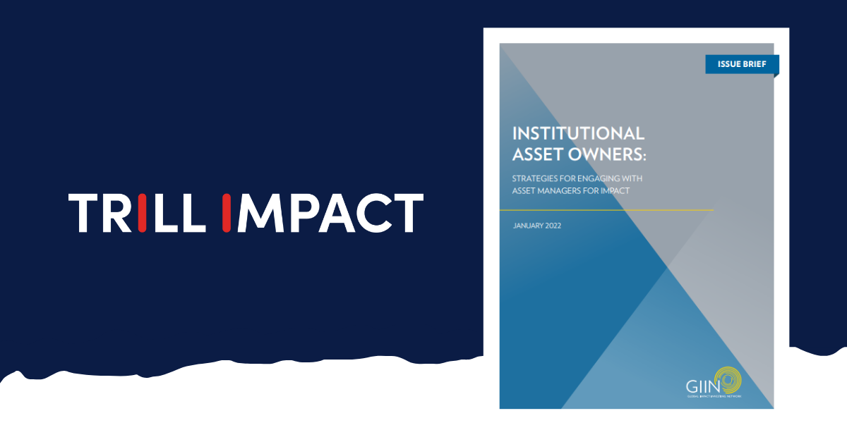 Trill Impact is very proud to have contributed its insights to the Global Impact Investing Network new research brief, Institutional Asset Owners: Strategies for engaging with asset managers for impact! Building on the Institutional Asset Owner series, this research focuses on strategies asset owners can employ to better align with external asset managers to incorporate impact within their existing portfolios. Specifically, this research offers insights into existing practice and strategies institutional asset owners take to align with asset managers when managing impact performance.